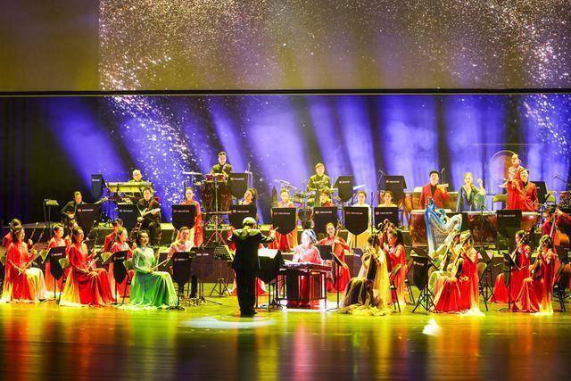 整场演出以民族器乐为核心。乐曲《辉煌》以恢弘激昂的旋律奏响开篇,《紫禁城》用悠扬曲调勾勒千年古都的庄重。随后,女声独唱《万疆》、乐曲《流沙》《鹤唳松山》、唢呐二重奏《百鸟朝凤》、男声独唱《鸿雁》等精彩不断。